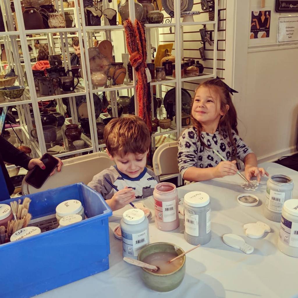 Painting Christmas ornaments at Clayground Studio in Old Ellicott City!